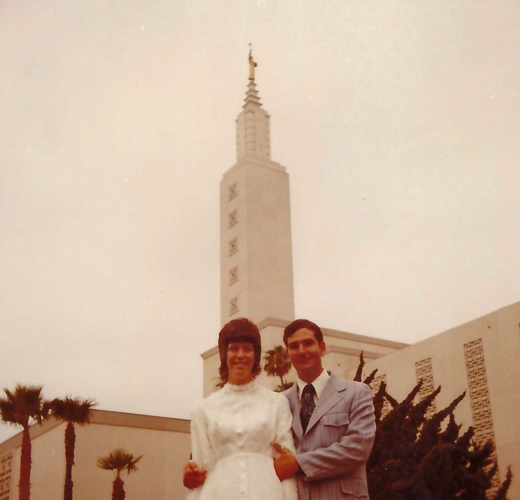 Kathy and I were committed to our faith, and we knew the only place to be married was in the temple of The Church of Jesus Christ of Latter-day Saints. There is no “until death do you part” there. We wanted this for us, and we knew this was what the Lord wanted for us. A temple marriage requires a commitment to live the highest standards of our faith, meaning no physical intimacy until after marriage. Kathy was in her first year of teaching in inner city Los Angeles at a challenging school. She couldn’t possibly add the challenges of a new marriage to her other demands, so we decided to wait until the end of the school year, eight months later. The covenants made in the temple have helped carry us through the difficult times that were to come. We were married on my dad’s sixty-sixth birthday, July 14, 1973.