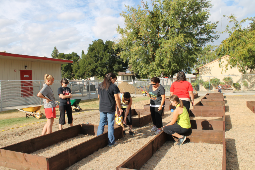 Kathy also initiated a school garden project, garnering significant community support. Vendors donated materials, and parents volunteered to build twenty-five 4′ x 8′ raised garden beds. Each teacher who desired a garden could integrate it into their class projects. The Goodlad sons installed the irrigation systems with parts and plans donated by a local irrigation vendor. This level of community engagement was unprecedented for Kerman-Floyd.