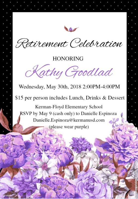 Each fall, Kathy consistently received Divine prompts regarding the focus for the upcoming school year. This occurred annually for all twelve of her years at Kerman-Floyd. However, for the 2018-2019 school year, no such prompts came. In November, the prompting she received was to wind things up and retire. She kept this decision private, only informing her assistant principal, knowing that an early announcement would diminish her effectiveness as a “lame duck” administrator.