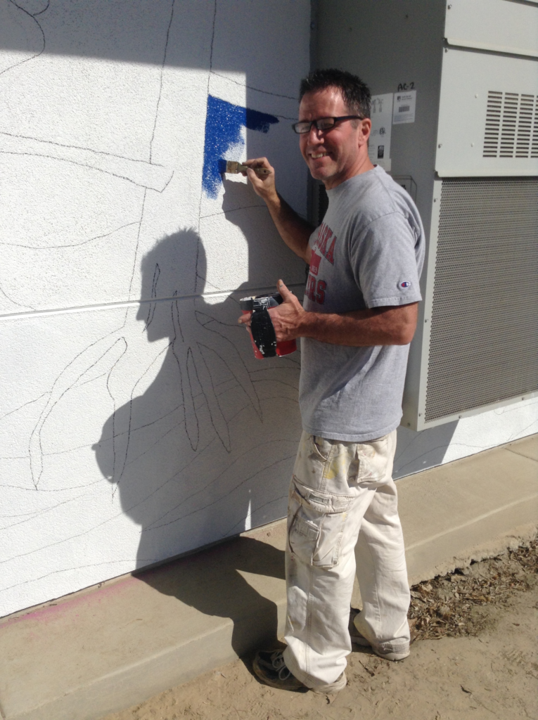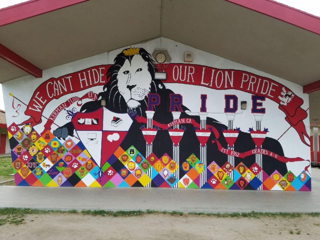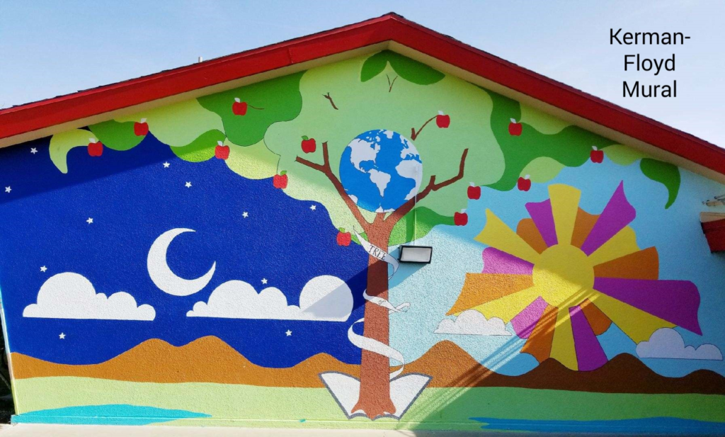 She was offered county grant money to create a mural at Kerman-Floyd. She got the superintendent’s blessing to add a mural. She found a great young artist who was willing to work with her kids to help put the first school mural up. Once completed, three more murals followed in future years. Later, as the superintendent was walking with her on campus he said that he only remembered approving one mural. Kathy’s answer, “I thought you approved putting murals on campus, not just one.” Sometimes forgiveness is easier than permission.