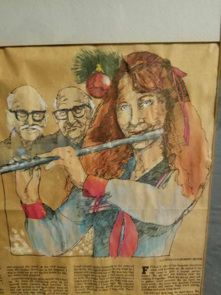 Kathy entered a writing contest with The Deseret News, a Salt Lake City newspaper. She wrote about her most memorable Christmas, when she received her very first owned flute for Christmas at the age of 13. The story told that they performed Christmas day at a care center for the elderly. She told the story of a bleak, sad setting that became lively and happy due to the group’s music and repeated performances. Her story was a contest winner and was published in the Deseret News.